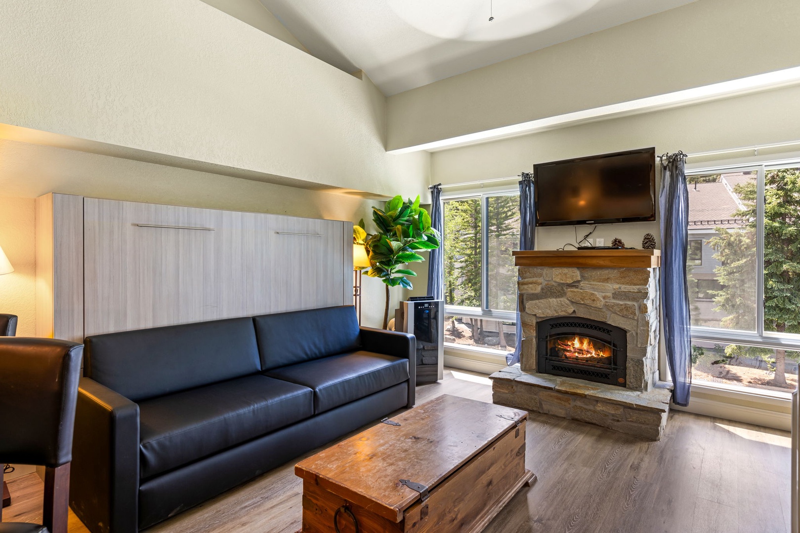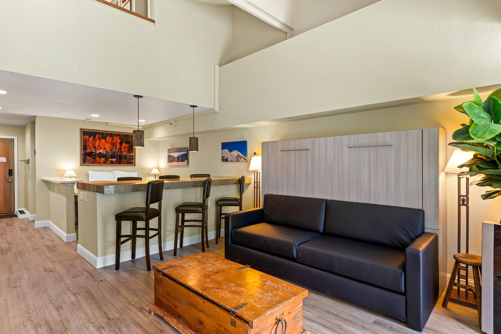 Discover and appreciate the ease of an “on the slope” stay with beautifully updated Premium Studio Loft condo #336. Located in ski-in/ ski-out Palisades Tahoe Lodge, this spacious two-story studio loft condominium has easy access to the great outdoors, the resort base area, restaurants and famous KT22 chairlift! And speaking of KT22, you are sure to enjoy the mountain views of KT and the Fingers over the rooftop of the lodge in condo #336! If that is not enough, the entire condominium is filled with beautiful photographs that are easy to sit and enjoy.